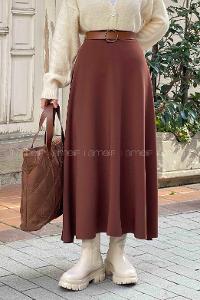 Bitter Brown Cotton Tensel Polyester Flare Skirt
