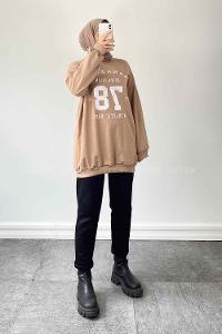 Brown With Milk Hood Neck Long Arm Sweatshirt