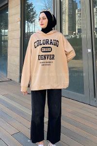Beige Hood Neck Long Arm Unprinted Sweatshirt