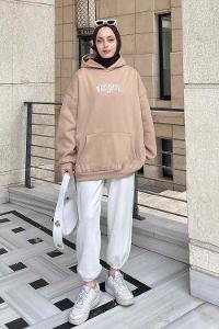 Camel Hood Neck Long Arm Sweatshirt