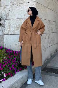 Bitter Brown Shirt Collar Long Arm Stamp Fabric Coat