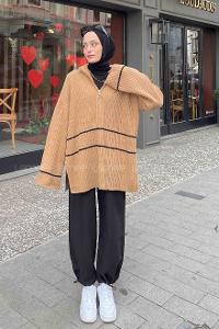 Camel Zippered Neck Knitwear Tunic