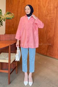 Candy Pink Shirt Collar Long Arm Cotton Poplin Fabric Shirt