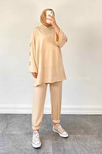 Cream Hood Neck Long Arm Modal Regular Trousers Comfortable Suit