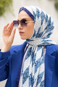 Midnight Blue Cotton Fabric Cashmere Striped Printed Shawl