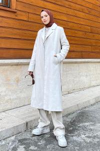 Beige Jacket Collar Long Arm Stamp Fabric Coat