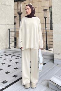 Ecru Choker Neck Long Arm Without Accessories Knitwear Regular Trousers Comfortable Suit