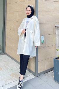 Ecru Long Arm Without Accessories With Necklace Cotton Trench Coat