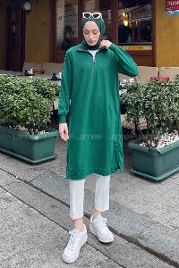 Emerald Green Choker Neck Combed Fabric Tunic