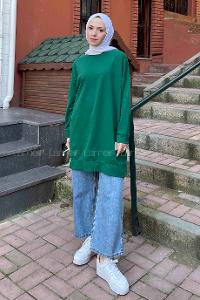Emerald Green Crew Neck Cotton Unprinted Tunic