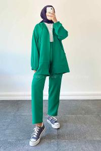 Emerald Green Hood Neck Long Arm Without Accessories Cotton Regular Trousers Comfortable Suit