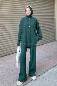 Emerald Green Crew Neck Long Arm Without Accessories Knitwear Regular Trousers Comfortable Suit
