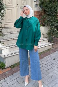 Emerald Green Shirt Collar Long Arm Cotton Poplin Fabric Shirt