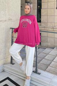 Fuchsia Crew Neck Long Arm Printed Sweatshirt