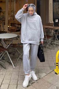 Gray Hood Neck Long Arm Without Accessories Two Threads Regular Trousers Comfortable Suit