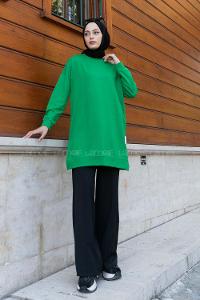 Green-1 Crew Neck Cotton Two Threads Unprinted Tunic