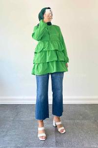 Green Mandarin Collar Linen Cotton Fabric Unprinted Tunic