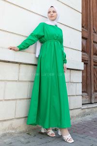 Green Medium Crew Neck Cotton Fabric Unprinted Dresess