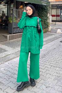 Emerald Green Crew Neck Long Arm Without Accessories Knitwear Regular Trousers Comfortable Suit