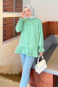 Mint Green Shirt Collar Long Arm Cotton Shirt