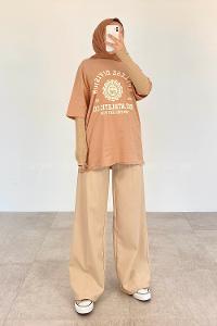 Brown With Milk Crew Neck Short Arm Cotton Printed T-shirt