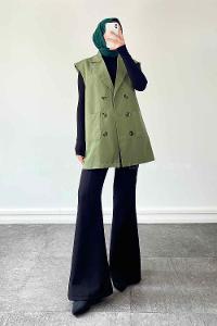Khaki Shirt Collar Zero Arm Linen Jacket