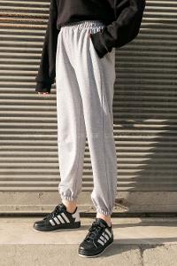 Gray Cotton Polyester Elastic Waist Comfortable Pants