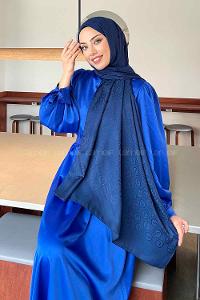 Navy Blue Cotton Fabric Flowering Printed Shawl