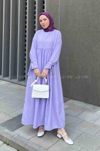 Lilac Medium Crew Neck Cotton Unprinted Dresess