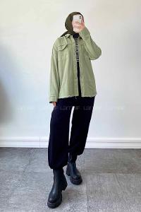 Mint Green Shirt Collar Long Arm Cotton Jacket