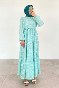Water Green Medium Crew Neck Cotton Fabric Unprinted Dresess