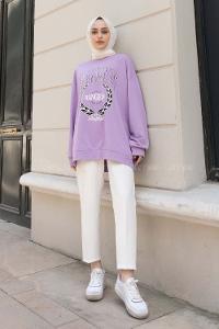 Lilac Crew Neck Long Arm Printed Sweatshirt