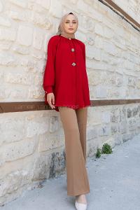 Claret Red Mandarin Collar Long Arm Ayrobin Unprinted Shirt