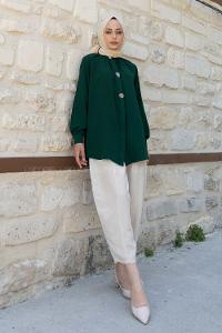 Emerald Green Shirt Collar Long Arm Cotton Poplin Fabric Shirt