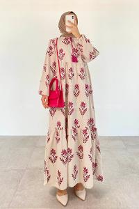 Fuchsia Foulard Neck Cotton Printed Dresess