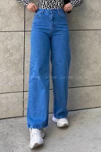 Dark Blue Cotton Denim Normal Waist Denim Pants