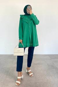Green Shirt Collar Long Arm Cotton Unprinted Shirt