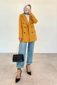 Ocher Shirt Collar Long Arm Cotton Fabric Jacket