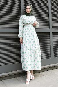 Emerald Green Crew Neck Cotton Printed Dresess