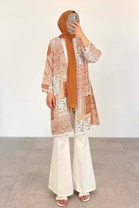 Bitter Brown Long Arm Cotton Polyester Kimono