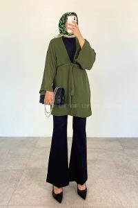 Khaki Half Arm Arm Belted Ayrobin Straight Kimono