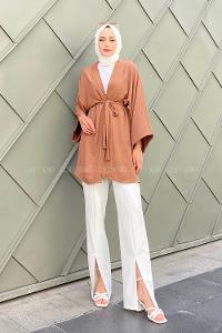 Brown Half Arm Arm Belted Ayrobin Straight Kimono