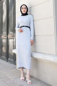 Grey-1 Mock Turtle Neck Cotton Dresess