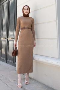 Soft Brown Mock Turtle Neck Cotton Dresess