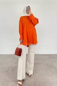 Orange Shirt Collar Long Arm Cotton Unprinted Shirt