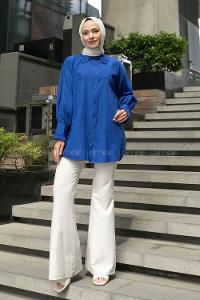 Saxe Shirt Collar Long Arm Cotton Unprinted Shirt