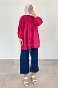 Fuchsia Neck Neck Combed Fabric Unprinted Tunic