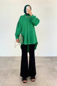 Green-1 Shirt Collar Long Arm Cotton Unprinted Shirt