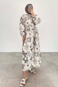 Sophisticated Gray Shirt Collar Viscose Fabric Printed Dresess