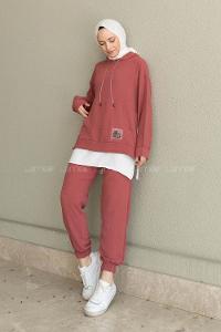 Bitter Brown Hood Neck Long Arm Cotton Regular Trousers Comfortable Suit